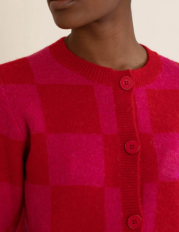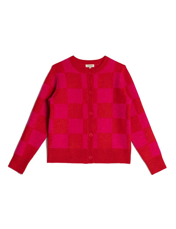 Give your winter wardrobe a burst of vibrance with this playful cardigan from Albaray, made with a touch of wool. It’s cut to a regular fit, with a simple crew neckline and classic button fastening. Featuring ribbed trims, this piece adds a warm layer to your look. It’s finished with an on-trend checkerboard pattern. Made with recycled polyester.