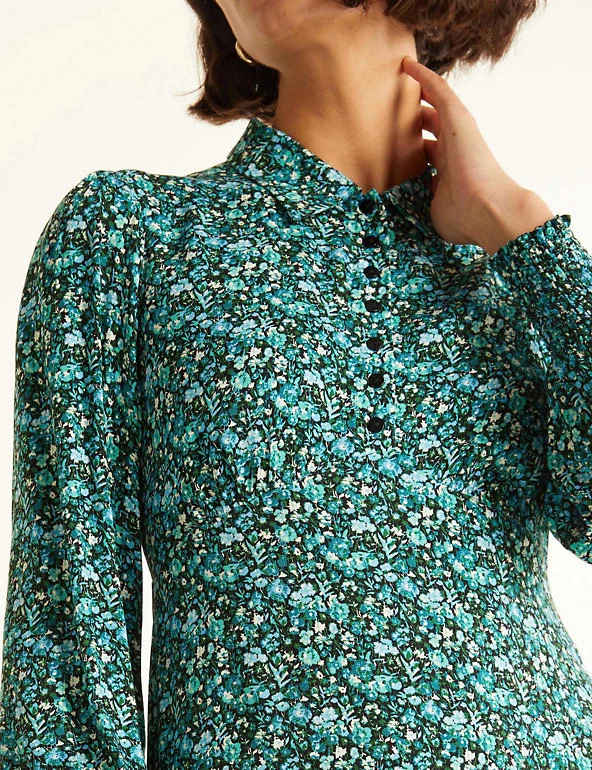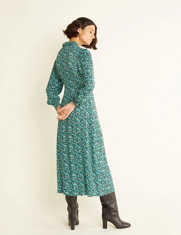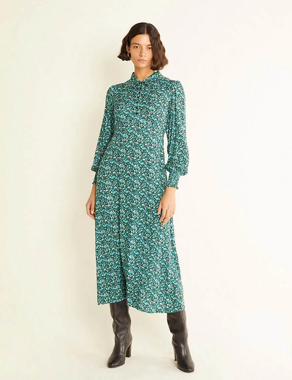 Designed in a dainty floral print, this Albaray dress drapes effortlessly to an elegant midaxi-length. Cut in a regular fit, it has a smart collared neckline and button-up front. The shirred cuffs give the voluminous blouson sleeves extra style points. Made with sustainably sourced viscose.