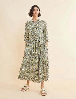 For a fresh summer look, step out in this floral tiered dress by Albaray. This effortless regular-fit style is designed with flattering 3/4 length sleeves and a smart collar. Wear this button-down midi loose, or enhance your waist with the matching tie. Made with sustainably sourced viscose.