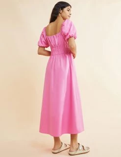 Bring a romantic feel to your outfit, with this pure cotton dress from Albaray. It’s cut in an easy regular fit, with a feminine square neckline and shirring at the waist to flatter your figure. The full skirt finishes at a breezy midi length, and includes slip pockets at the hips. Short puff sleeves give an on-trend finishing touch. Made with organic cotton.