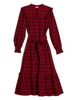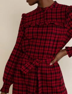 Check classic print off your wish list with this pure cotton swing dress from Albaray. This regular-fit style has long sleeves with elasticated cuffs and a button-down collarless neck. A matching tie enhances the waist, and frill detailing adds a feminine touch. The on-trend midi-length skirt has a playful tiered finish. Made with organic cotton.
