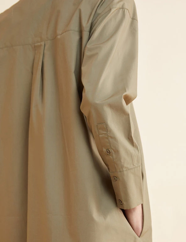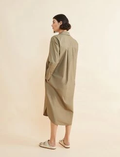 For effortless workwear that can be dressed down for the weekend, look to this pure organic cotton shirt dress from Albaray. This regular-fit midi is designed with cuffed long sleeves and a classic collar, plus utility-inspired touches like a covered button placket and patch pocket. The curved hem brings a modern finishing touch. Made with organic cotton.
