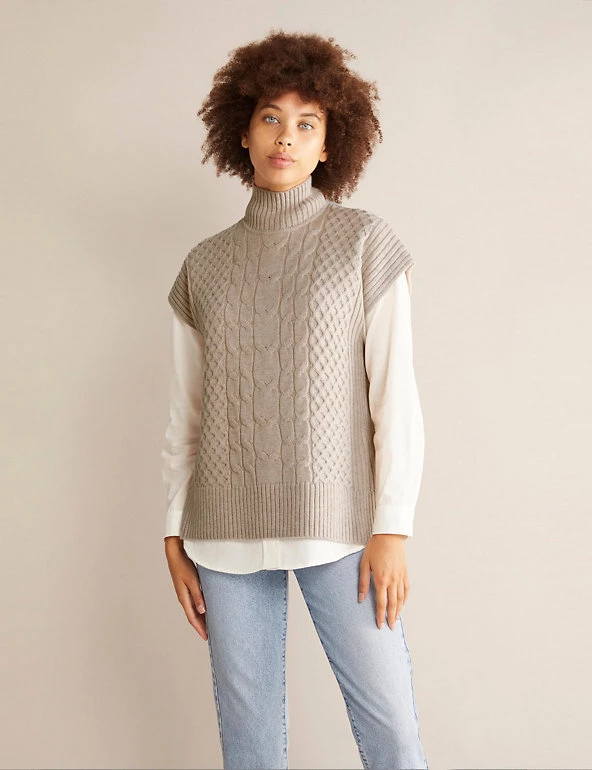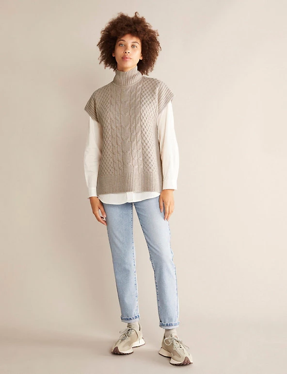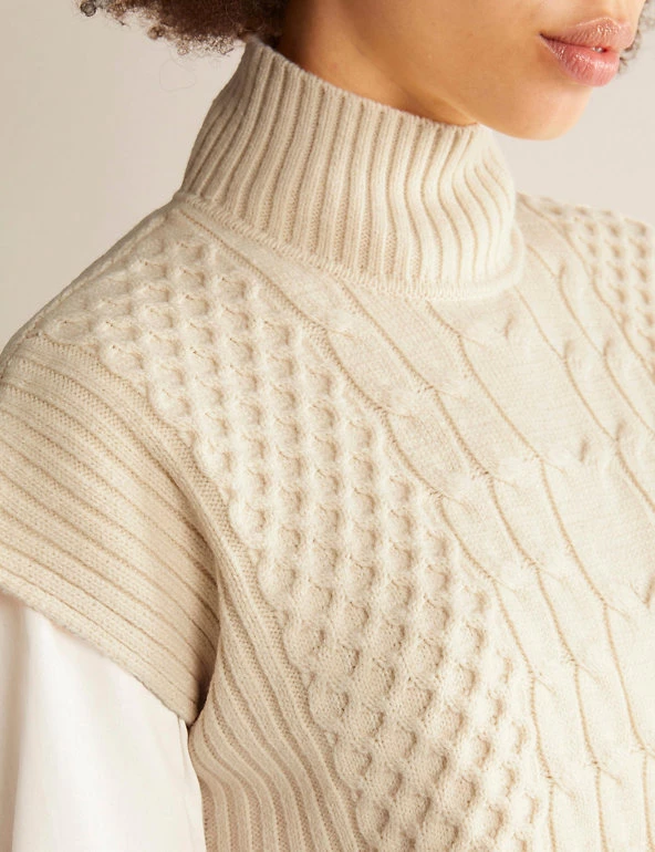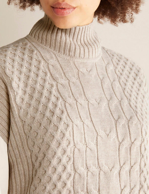 This short-sleeved jumper from Albaray will make a unique addition to your wardrobe. It’s cut to a comfortable regular fit with a statement funnel neck, from a blend including wool. The stylish knit features cable and diamond stitching as well as thick ribbed trims along the sleeves and hem.