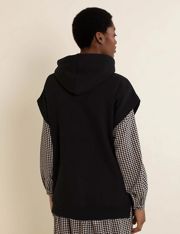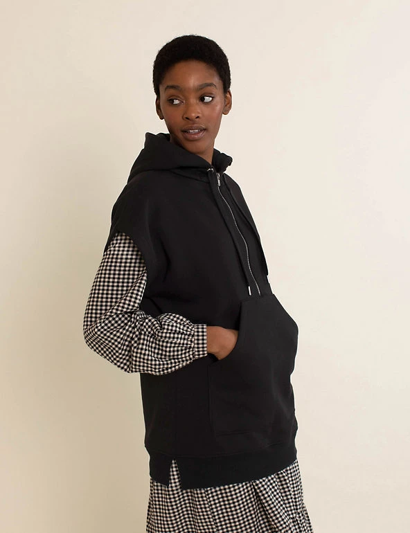 Add an on-trend layer to off-duty outfits with this sleeveless organic cotton-rich hoodie from Albaray. It’s designed in a regular fit for comfort and features a drawstring hood for an adjustable fit. This cosy piece has a versatile half-zip and a kangaroo pocket for warming your hands. Made with organic cotton.