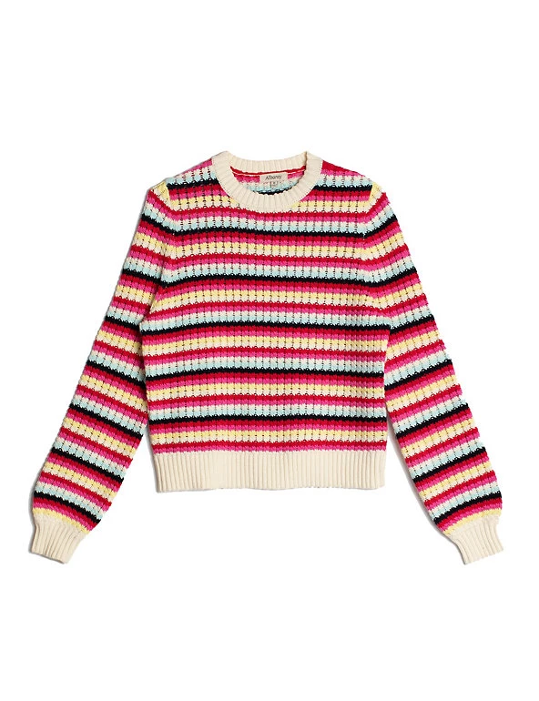 Stay warm in style with this pure cotton, striped Albaray jumper. Cut to a regular fit, this classic piece has a crew neckline and long sleeves. Chunky ribbed hems bring a snug finish.