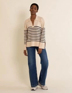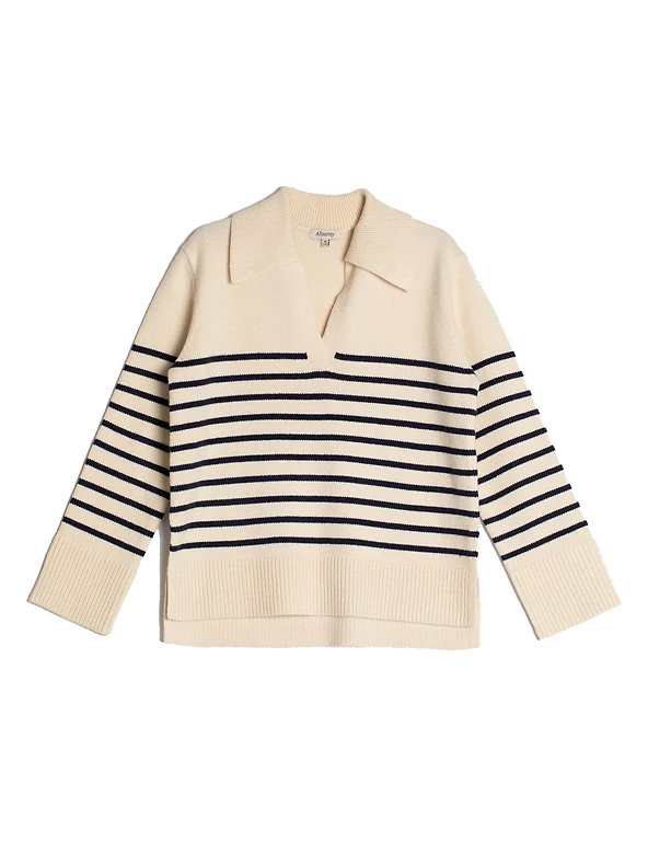 Made with a touch of wool, this Albaray jumper will become your favourite cold-weather essential. It’s cut to a regular fit with a collared neckline and long sleeves. Two splits in the side and a stepped-hem make for a flattering silhouette. The jumper is finished with snug ribbed trims and a timeless stripe throughout.