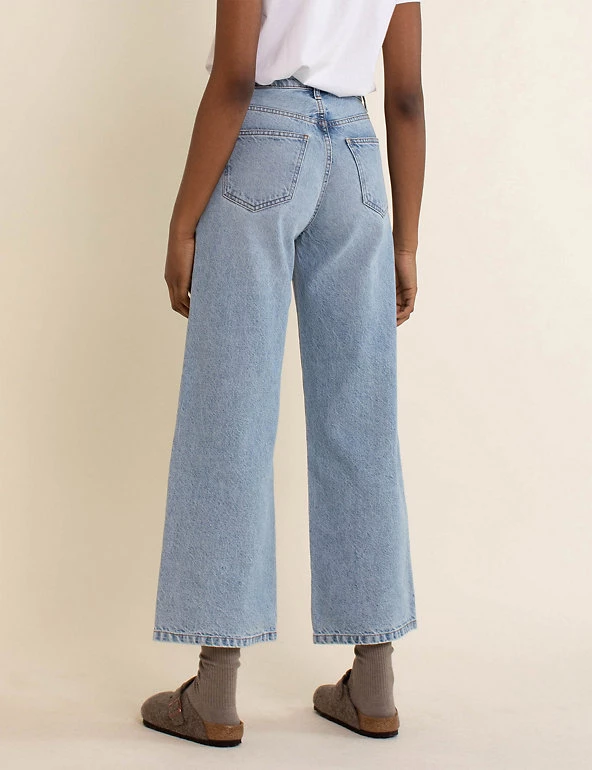 These jeans from Albaray combine chic style with comfort. They’re cut to a wide-leg fit with a mid-rise design. Their classic five-pocket styling includes rivets and a watch pocket. Made with organic cotton.