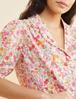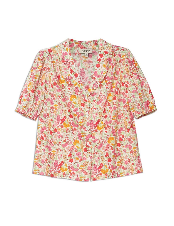 This floral print blouse from Albaray lends a romantic air to your outfit. It’s cut in an easy regular fit, with button-up fastenings and a feminine v-neckline. The revere collar is finished with a fluttery frilled trim to add extra detail, and the short sleeves are elasticated for a touch of pretty fullness.