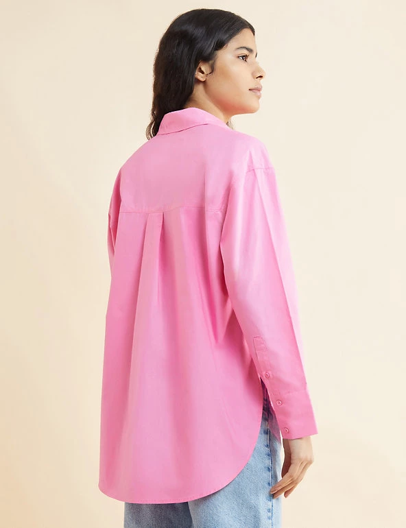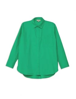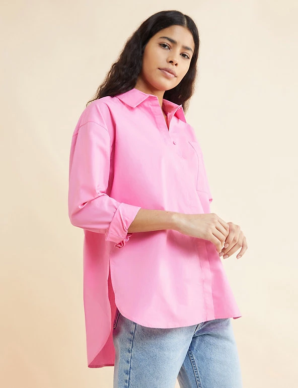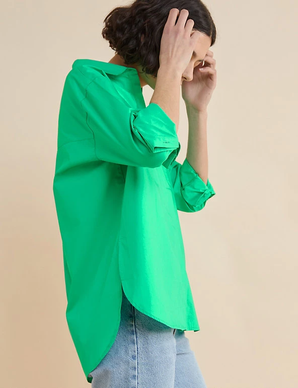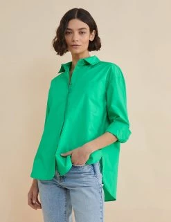 This organic cotton shirt from Albaray combines comfort and style. Its regular fit and classic button-up detail are elevated through a step hem and pleated back, creating a billowy silhouette. Dropped shoulders and 3/4-length sleeves add to the laid-back feel. Made with organic cotton.