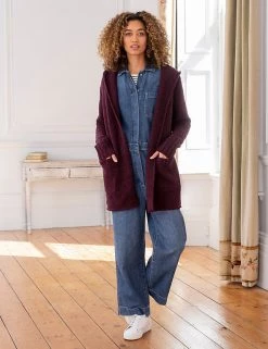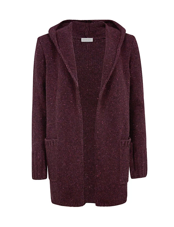 Stay cosy and warm when the temperature drops in this pure wool longline coatigan from Celtic & Co. Cut to a regular fit, this layer has a handy hooded neckline and casual edge-to-edge styling with no fastening. It features ribbing on the collar and cuffs for a little extra snugness, plus two front pockets to keep your hands warm.
