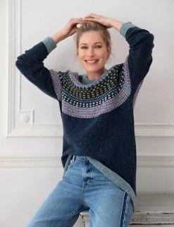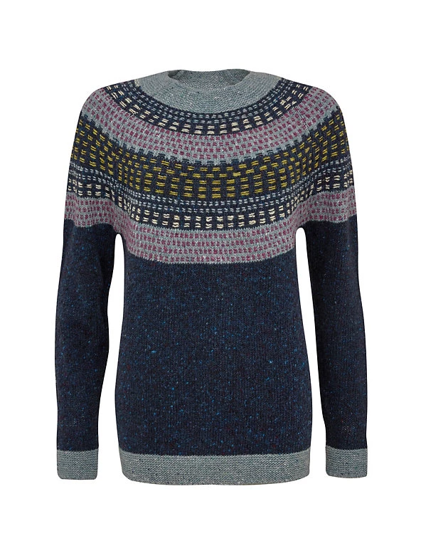 Spun with speckled yarns sourced from Donegal, this Celtic & Co. pure wool jumper fuses traditional charm with a luxuriously cosy feel. A special float-stitching technique is used to create curved patterns at the chest and back. Contrast stitching at the crew neckline, cuffs and hem add texture.