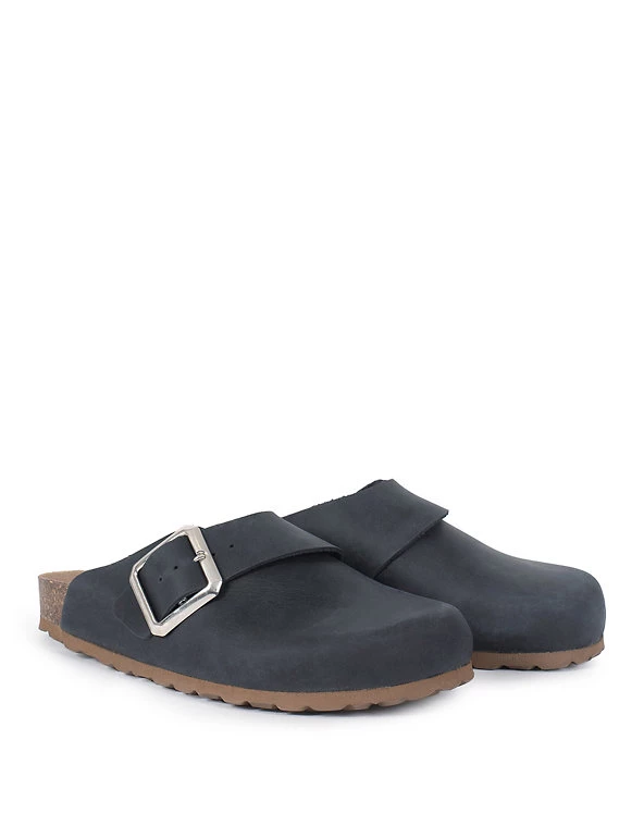 Crafted from sleek premium leather, these stylish clogs by Celtic & Co perfectly complement any casual outfit. A suede-lined insole gives the regular-fit pair a super comfortable feel, together with their moulded cushioned footbed. They have a classic flat design with a slight wedge around the heel to create a subtle touch of height. These versatile slip-ons are easy to adjust thanks to a polished buckle strap on the side.