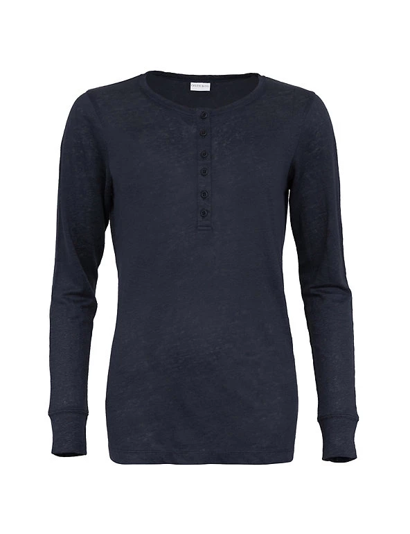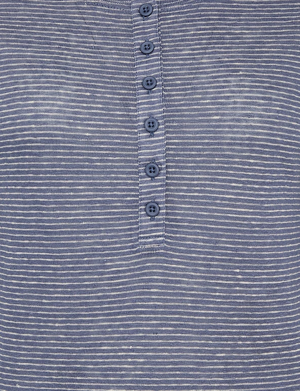 This Henley top from Celtic & Co is made from a blend of cotton and linen for breathable comfort. It’s cut in an easy regular fit, with long sleeves and a traditional button-through placket at the round neckline. An all-over striped pattern adds a fresh, summery touch.