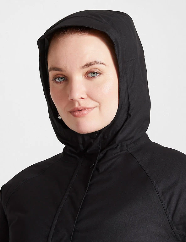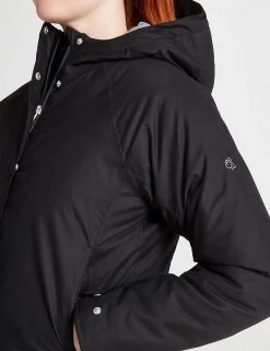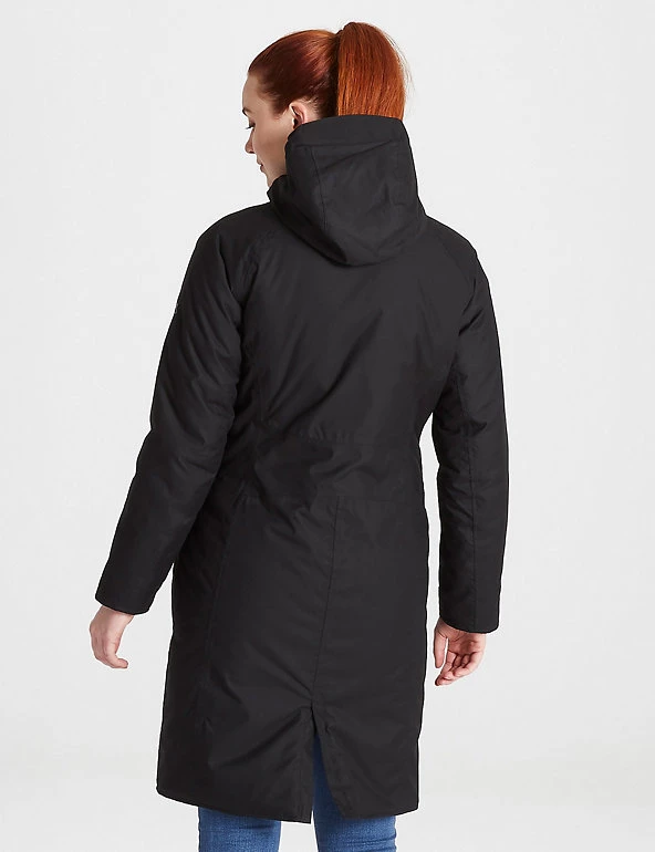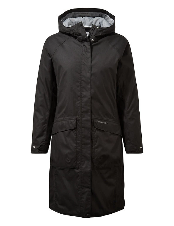 Stay warm and protected in any weather with this Craghoppers padded coat. It’s designed in a 38.5″ longline relaxed fit to give extra room for underlayers, with added stretch to ensure plenty of freedom to move. Its high-loft ThermoAir+ wadding traps body heat and locks it in. The Aquadry Membrane and Ecoshield coating create a waterproof finish that’s also wind-resistant and breathable. Adjustable cuffs and a stud-fastened storm flap over the zip help shut out draughts. Seven pockets safely store your essentials. Made with recycled polyester.