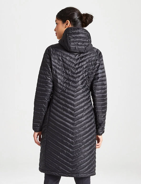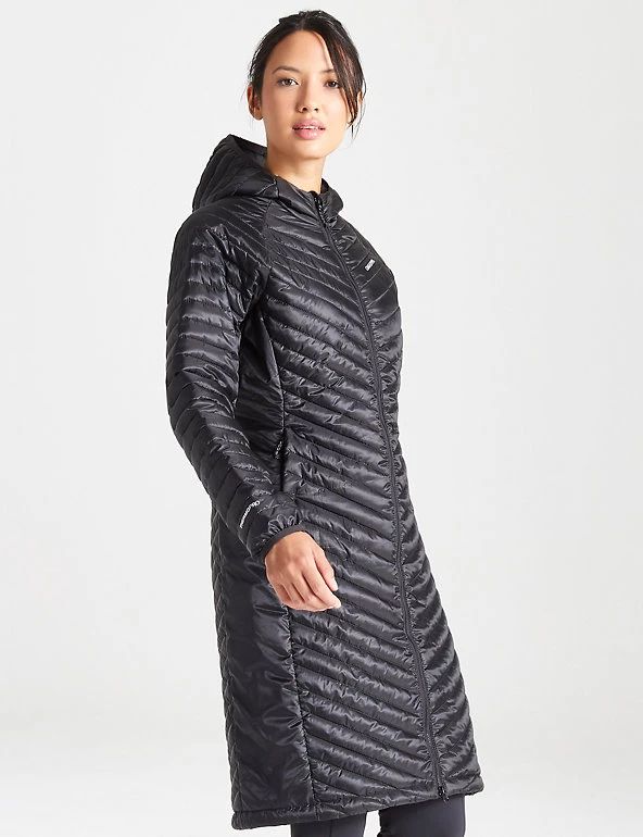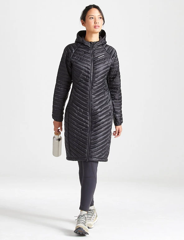 When the weather turns cold and rainy, this quilted puffer jacket from Craghoppers has you covered. Its generous regular fit allows room for underlayers and the longline style gives plenty of coverage. The clever Ecoshield water-repellent finish keeps you dry in a shower. Its lightweight and quick-drying Thermopro lining creates similar insulation to traditional down, and a neatly fitted hood adds extra warmth. It’s 38″ long and fastens with a zip. Made with recycled polyester.