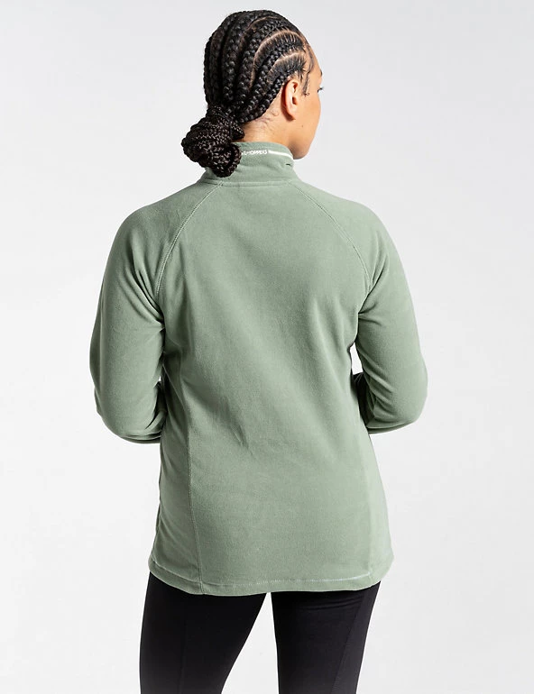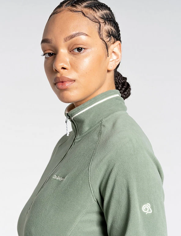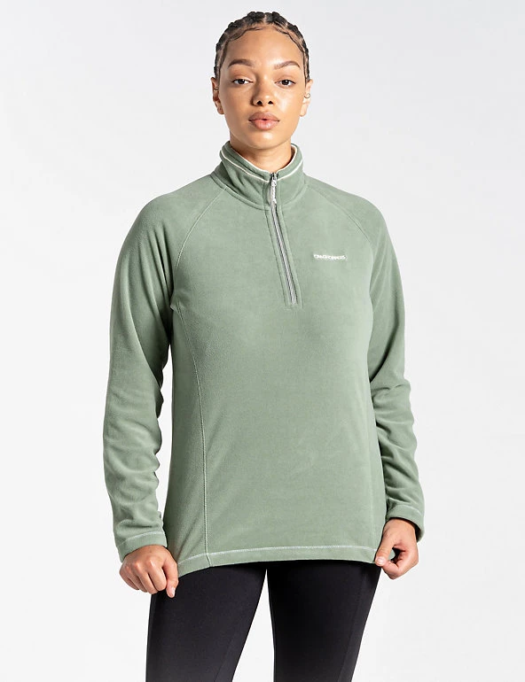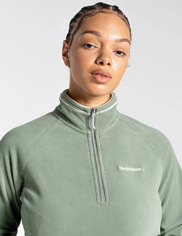 Add an extra layer on outdoor adventures with this half-zip fleece from Craghoppers. It’s cut to a relaxed fit for easy on and off, and has a funnel neck for added warmth. The brand’s Wash & Wear technology means that this piece is quick-rinse, quick-dry and needs no ironing. It’s finished with a small brand logo on the chest. Made with recycled polyester.