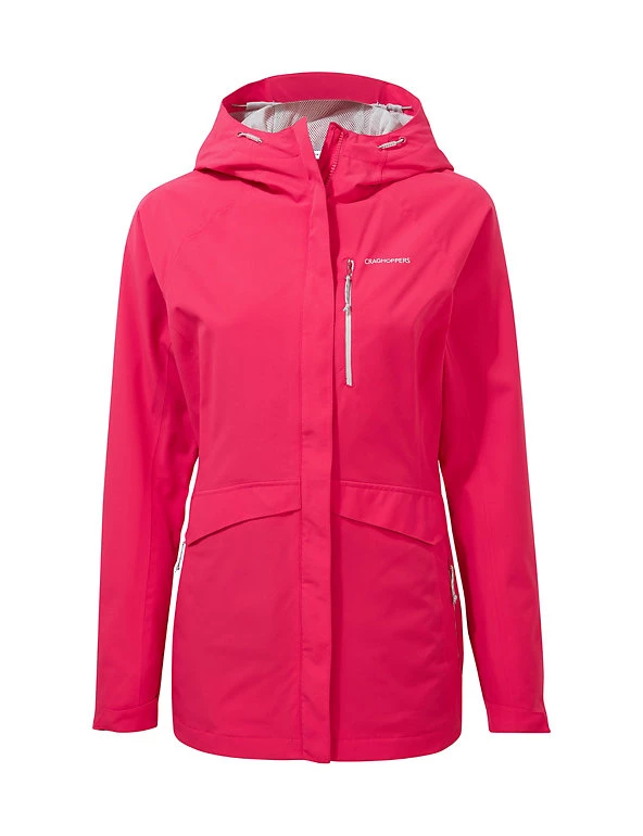 Step out whatever the weather in this waterproof utility jacket from Craghoppers. This practical piece is cut to a comfortable regular fit, with a high neck and a warm drawstring hood. It’s designed with the brand’s Aquadry Membrane, a waterproof and breathable coating, and technical outer fabrics. The outer shell is treated with a durable water-repellent finish to help keep the fabric drier for longer, and wrist straps help keep the cold out too. It’s finished with zipped pockets and a handy map pocket. Made with recycled polyester.