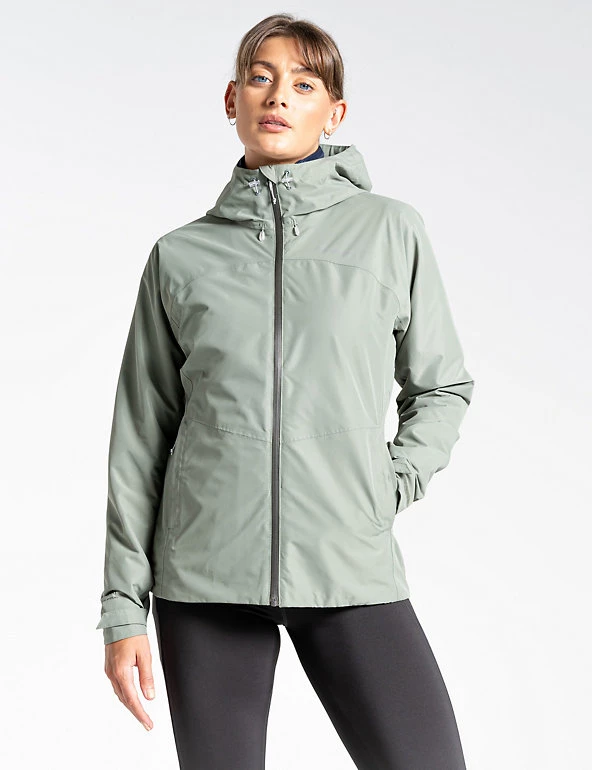 This breathable zip-up jacket from Craghoppers is perfect for hiking adventures. It’s designed in a comfy regular fit with an adjustable hem for a flexible feel and a drawstring hood for extra coverage. This practical piece has a zipped security pocket and a special pocket for your ordnance survey map. It’s crafted from AquaDry membrane waterproof fabric to protect you from the elements. Made from recycled polyester.