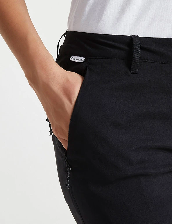 These Craghoppers Kiwi Pro trousers are a perfect choice for outdoor adventures. They’re styled in a practical tapered shape with a comfortable fixed waist. The Ecoshield water-repellent finish keeps you dry in a shower. A cosy brushed lining adds extra insulation when the weather turns chilly, and three zipped pockets ensure your essentials stay secure. There’s a detachable sunglasses wipe to keep your shades clean, and heel tape added to the ankle hems for outstanding durability. Made with recycled polyester.