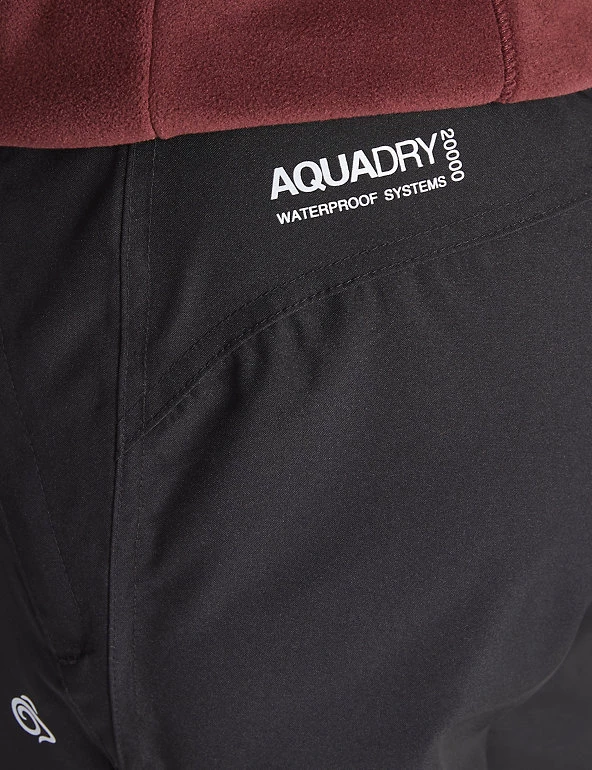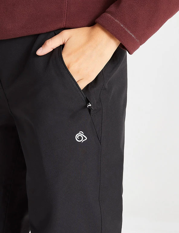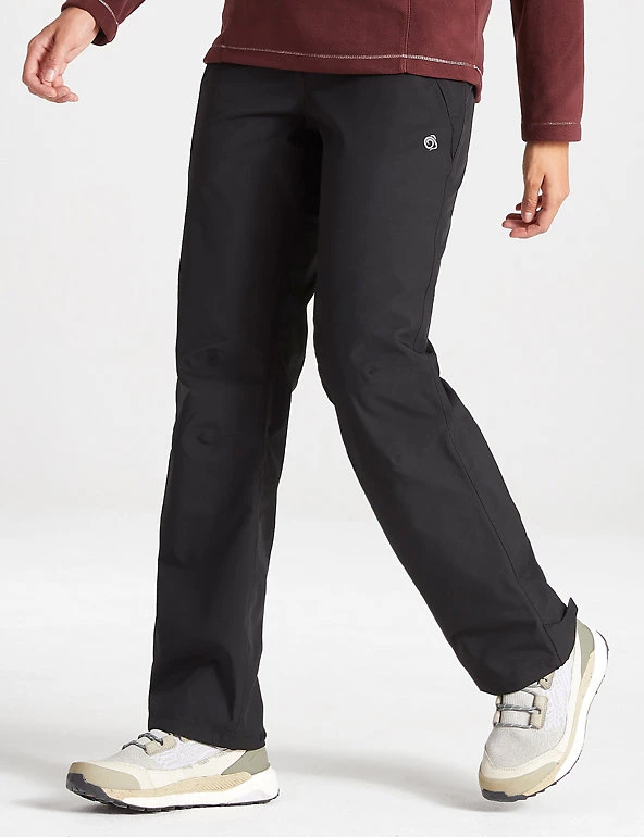 These Craghoppers trousers have you covered for all conditions. They’re cut to a slim fit, and have a mid-rise waist that’s part-elasticated for comfort. The adjustable hem makes them easy to wear with a range of footwear, and heel tape means you can have a narrower or wider fit at the ankle. These trousers are made with the brand’s AquaDry membrane for a waterproof finish that’s also breathable, keeping you cool, dry and comfortable during activities. Zipped front and back pockets keep your essentials safe. Made with recycled polyester.