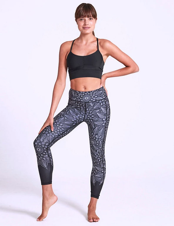 With their sculpting and smoothing qualities, these Dharma Bums leggings have you covered. This style is cut to a 7/8 length, with an elasticated high waist for a secure, supportive feel. They’re designed with a handy side pocket for your phone and have an exclusive allover print. Made with recycled polyester.