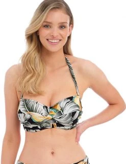 This botanical-inspired bandeau bikini top from Fantasie is the perfect touch of tropical. It features lightly padded cups for support, with a clasp fastening at the back and removable halterneck straps. A twist front style creates a flattering sweetheart neckline.