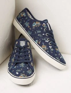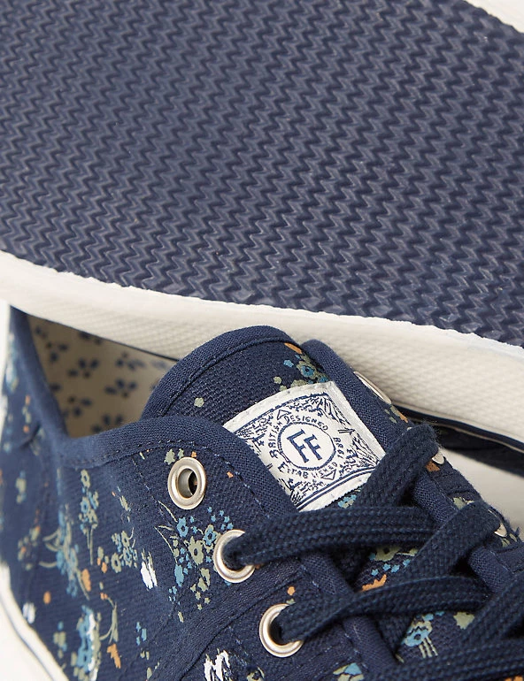 Refresh your footwear collection with these pretty canvas trainers from FatFace. They’re designed in a classic lace-up style with a flat heel and are decorated with a sweet floral print. The tongue is stamped with branding and the contrasting printed lining adds a little extra personality.