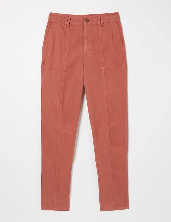 Add a classic look to your weekend wardrobe with these cotton-rich trousers from FatFace. They taper through the leg for a streamlined silhouette and sit at a comfy mid rise. Handy pockets feature at the hips and back, while stitched detailing provides an authentic utility look. A button and zip fastening adds the finishing touch.