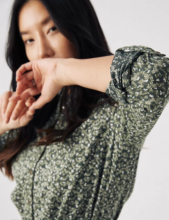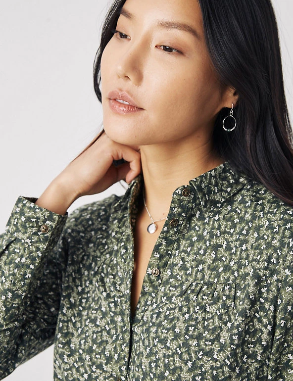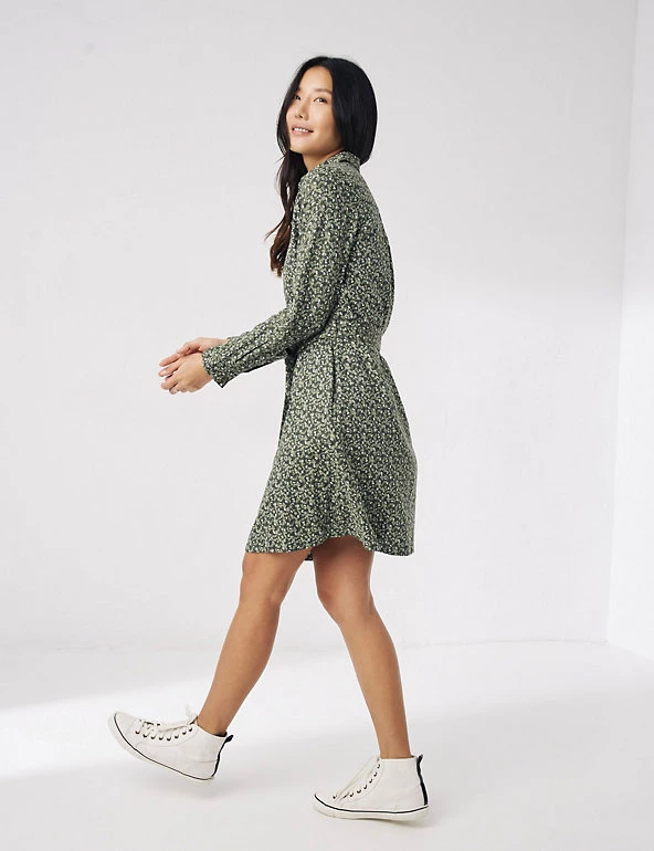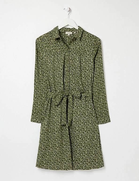 This cotton-blend shirt dress from FatFace will add a stylish twist to your wardrobe. It’s designed in a comfy regular fit with a belted waist for a flattering silhouette. This long-sleeved design falls to a versatile knee length and is decorated with a whimsical butterfly print.