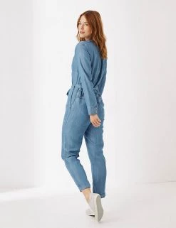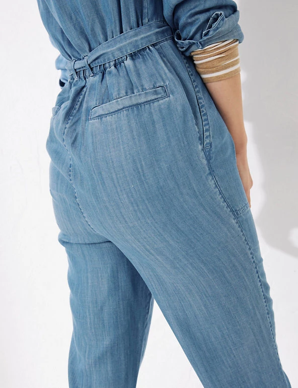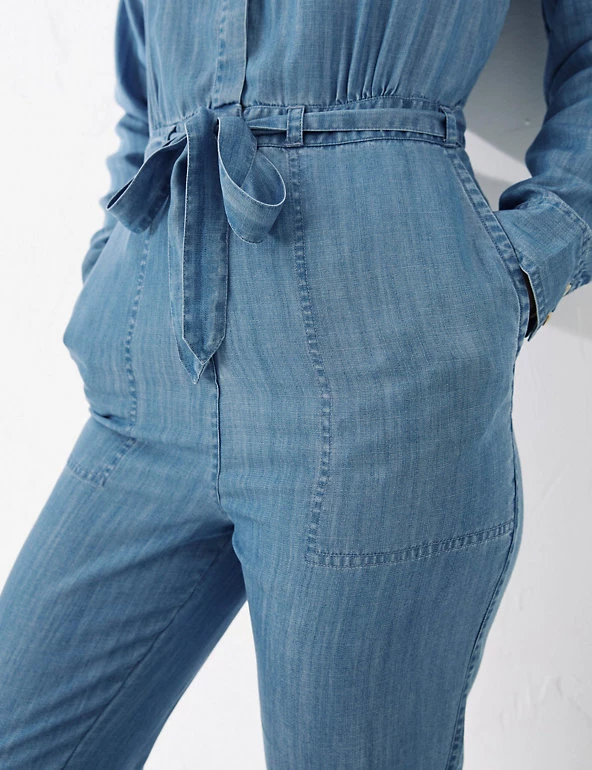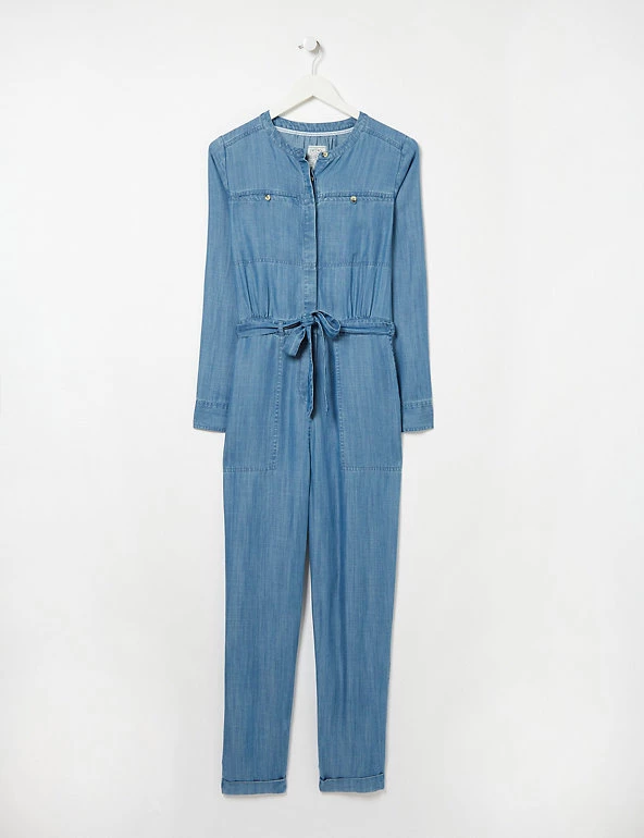 Feel extra-stylish on casual occasions, in this pure Tencel™ jumpsuit from FatFace. It’s made in a comfortable regular fit, with an easy round neckline. The button fastenings are tucked away behind a concealed placket for a neat finish. At the waist, a tie belt emphasises your figure. Button-up pockets on the chest give a touch of utility style, and generous patch pockets at the hips look after your essentials. Made with sustainably sourced Tencel™ lyocell.
