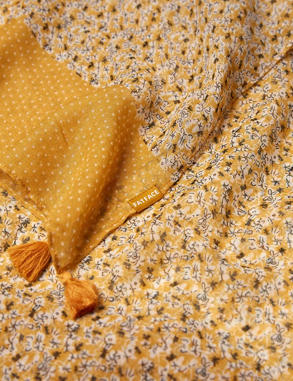 Designed with a delicate butterfly print, this FatFace scarf is the perfect finishing touch to any look. It’s complete with bright tassels and contrast polka dot ends, plus a branded label on one side.