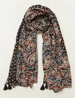 Embrace effortless accessorising with this lightweight scarf from FatFace. This eye-catching design features a mix of paisley and geometric floral prints, plus textured tassel detailing at the hem.