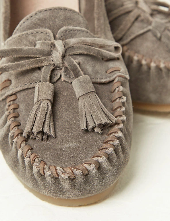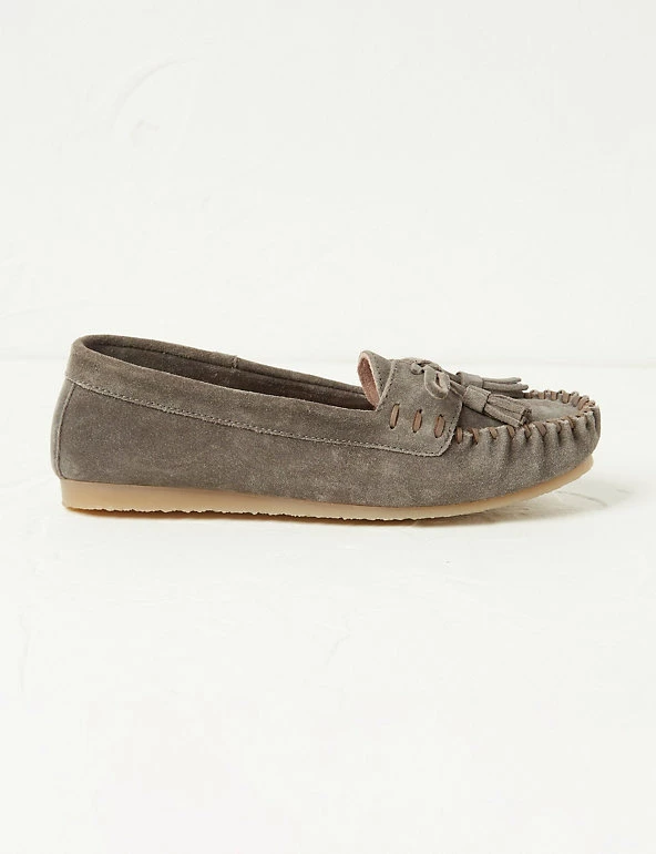 Treat your feet to these comfortable suede moccasins from FatFace. They’re designed in an effortless slip-on style and feature classic stitch and tassel detailing. The flat heel is great for everyday wear.