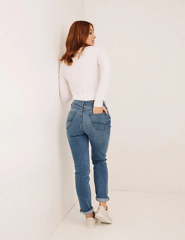 Meet your new wear-everywhere jeans from FatFace. This cotton-rich pair has a touch of stretch for easy wear, and are designed in a boyfriend fit for a slouchy, relaxed look. They’re complete with classic stitching, five pockets and a button and zip fly fastening. Made with cotton.