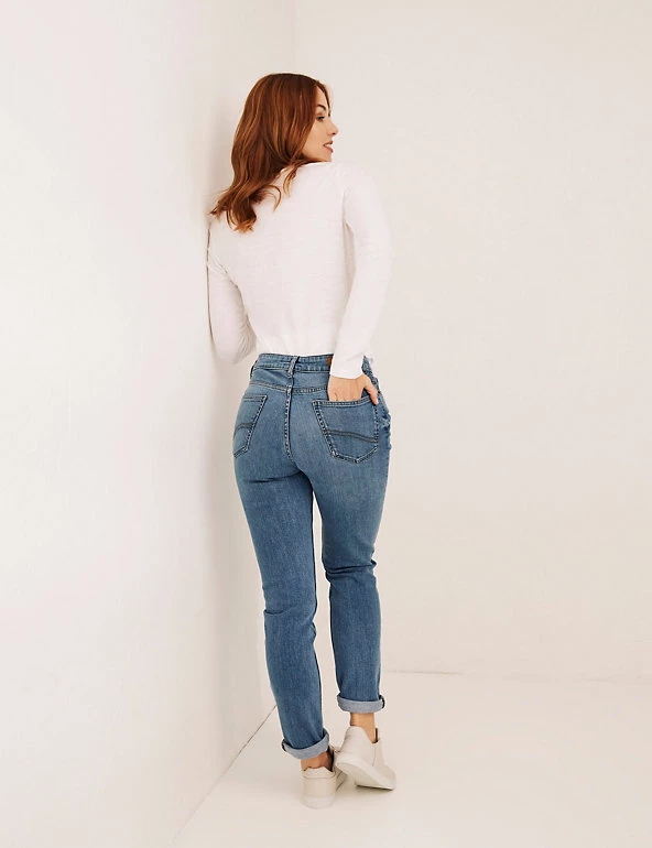 These classic denim jeans from FatFace will make a stylish addition to your casual wardrobe. They’re cut to a boyfriend fit that’s fitted around the hips, with a mid-rise waist and a more generous cut through the legs. The fly is fastened with a button and zip. Made with cotton.