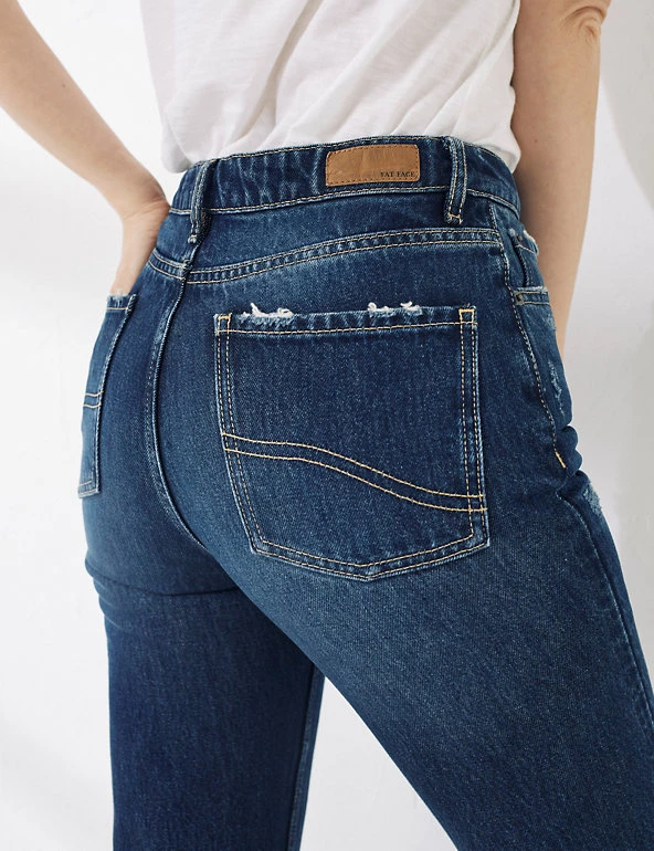 Meet your new wear-everywhere, cotton-rich jeans from FatFace. They’re cut to a flattering fit, with a mid-rise waist and straight leg. A faded wash and distressed detailing give this pair a lived-in feel. Turn the hems up to add to their laid-back appeal.