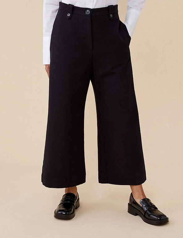 These cotton-rich trousers from Finery London will make a versatile addition to your wardrobe. They’re designed with a cropped wide leg for a modern feel and have a flattering high-waisted fit. A button fastening and tab detailing add the finishing touches.
