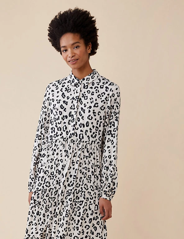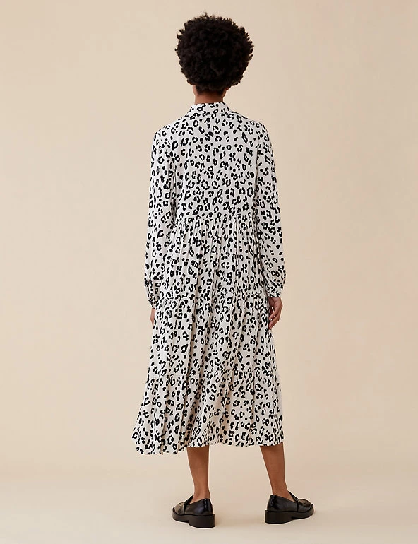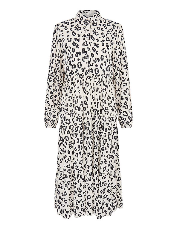 Create a bold look with this animal print shirt dress from Finery London. The midi-length design creates a flattering silhouette and is cut to an easy regular fit. Long sleeves provide timeless style, while a collared neck gives a smart edge. A button-through fastening adds the final touch.