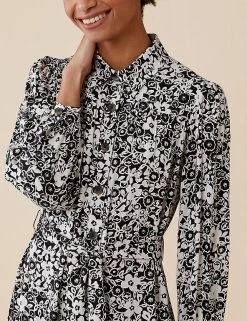 This charming Finery London shirt dress is printed with fresh florals. Designed in a regular fit, it has a smart collared neckline and buttons down the front. The dress falls to an elegant midi length with flattering pleats throughout. A matching self-tie belt nips in the waist, while voluminous long sleeves enhance the feminine look.