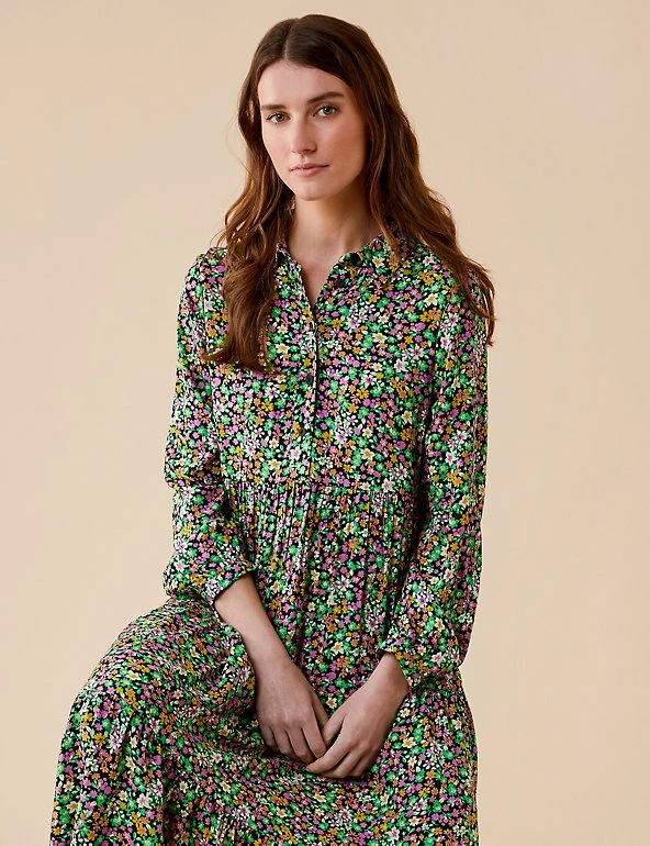 Discover a shirt dress that makes a statement with this style from Finery London. This regular-fit midi dress features a classic collar and contrast button fastenings on the bodice. Long sleeves and waisted detailing give the dress a flattering finish, while the bold floral print is sure to make you stand out.