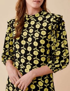 This tea dress from Finery London is a real head-turner. It’s designed in a regular fit for throw-on-and-go appeal and has a modern high neck with frilled shoulders. Waisted detailing and 3/4 length sleeves give this midi a flattering finish, while the bold all-over floral print makes for striking detail.