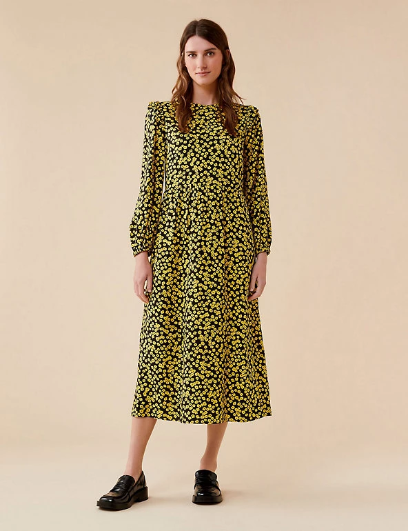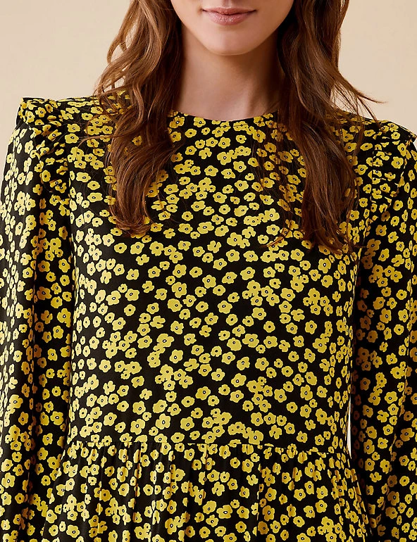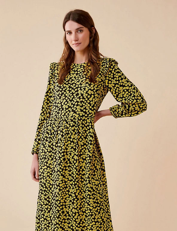 This Finery London tea dress ticks all the boxes for fresh floral style. It’s cut to an effortless regular fit, with a round neck and long sleeves. Waisted detailing gives this piece a flattering finish and adds extra movement to the midi-length skirt. For the final touch, there are feminine frills on each shoulder.