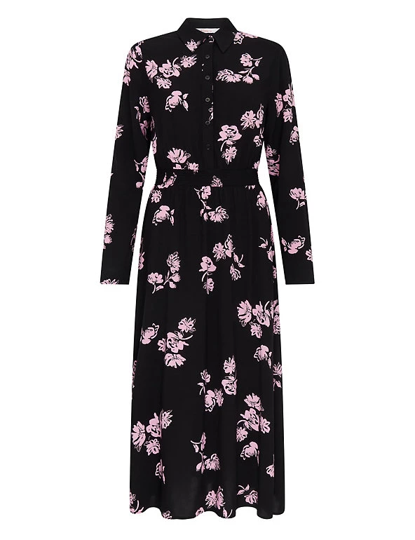 Embrace the bold floral trend with this striking shirt dress by Finery London. This modern midaxi-length piece is made in a regular fit and features a smart collared neck and elegant long sleeves. A subtle button fastening on the front completes the look.