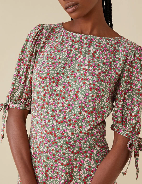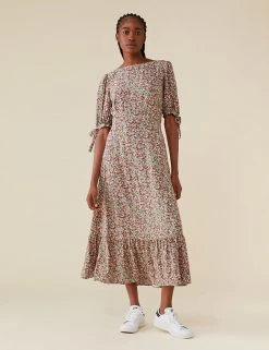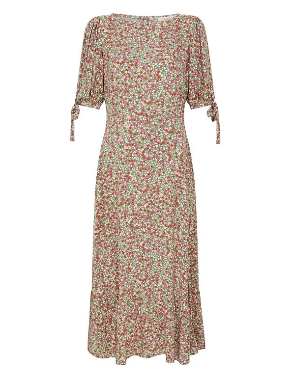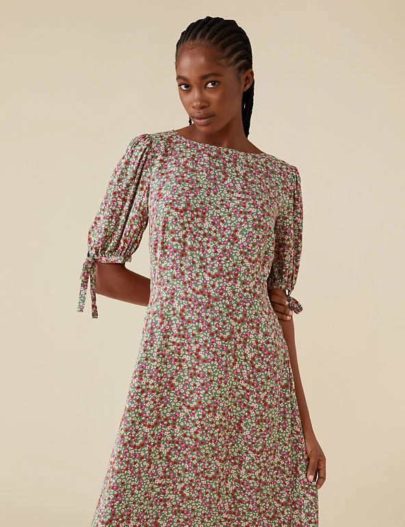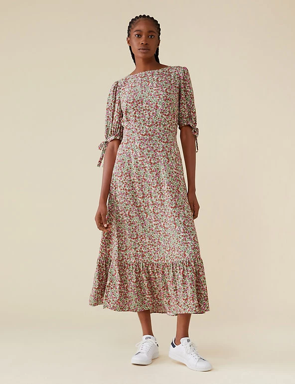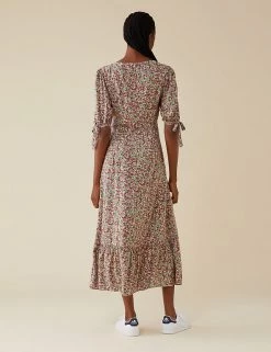 Choose delicate florals for your next wear-all-season-long piece with this lively floral dress by Finery London. Designed in a regular fit, this waist-skimming dress has a swishy tiered hem that falls to the ankle. Gently puffed sleeves with ties at the cuffs add the final touch of charm.