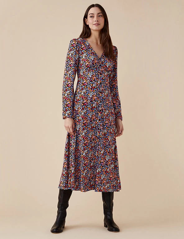 This floral print tea dress from Finery London makes a versatile addition to your wardrobe. It’s cut in a comfortable regular fit, with a feminine v-neckline. Shaping under the bust emphasises your figure and the midi length hem ensures a go-anywhere look. The button-through front adds a pretty finishing detail.