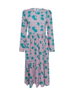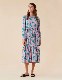 Product Style: Tiered dress, Product Length: Midi, Fit: Regular fit, Fastening: Back button fastening, Unlined, Neck Shape: Round neck, Sleeve length: Long sleeve