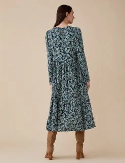 Bring extra flair to your casual wardrobe, with this laid-back paisley dress from Finery London. Its relaxed fit and tiered skirt ensure plenty of pretty movement, and the long sleeves and round neckline give a sophisticated look. A midi length hemline creates an on-trend feel. The dress is fastened with a keyhole and button closure at the back of the neck.