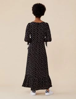 This charming Finery London dress features a polka dot print and comes in an easy-to-wear tea silhouette. It’s cut to a regular fit with a simple round neckline and empire shape to accentuate your waist. The long blouson sleeves are finished with elegant tie details. A subtly tiered hemline adds movement.