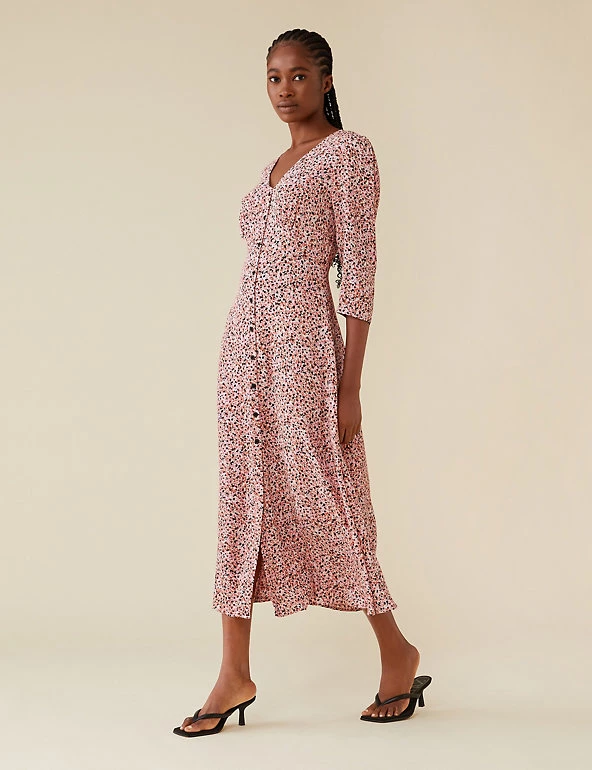 Master effortless elegance in this printed dress by Finery London. It’s cut in a waist-skimming regular fit, with a flowy midaxi skirt. A flattering v-neckline and 3/4-length sleeves complete the design.