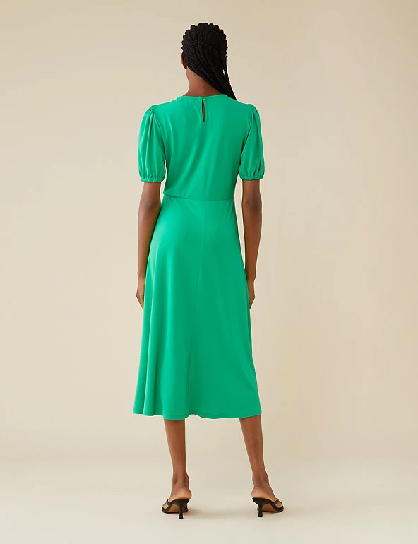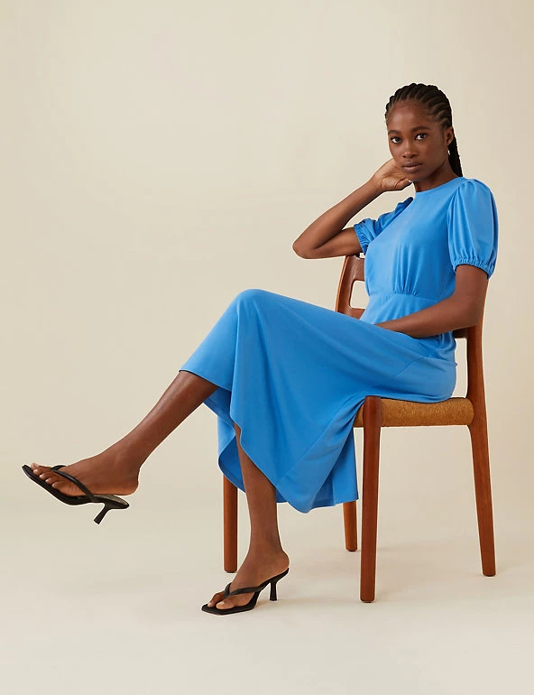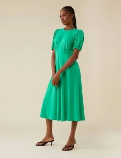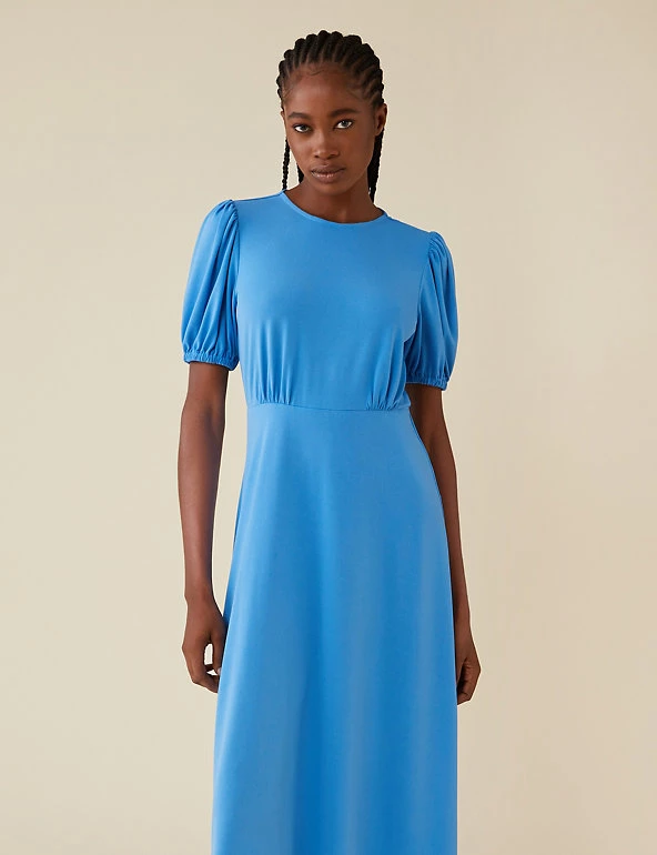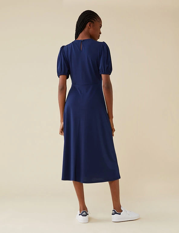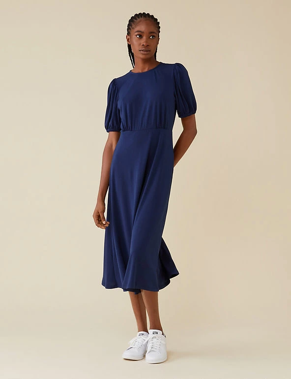 This sleek and simple tea dress from Finery London makes a big impact. Cut to a regular fit, it features short puff sleeves and flattering waisted detailing. This piece has an on-trend midi hem and fastens with a keyhole button fastening at the back.